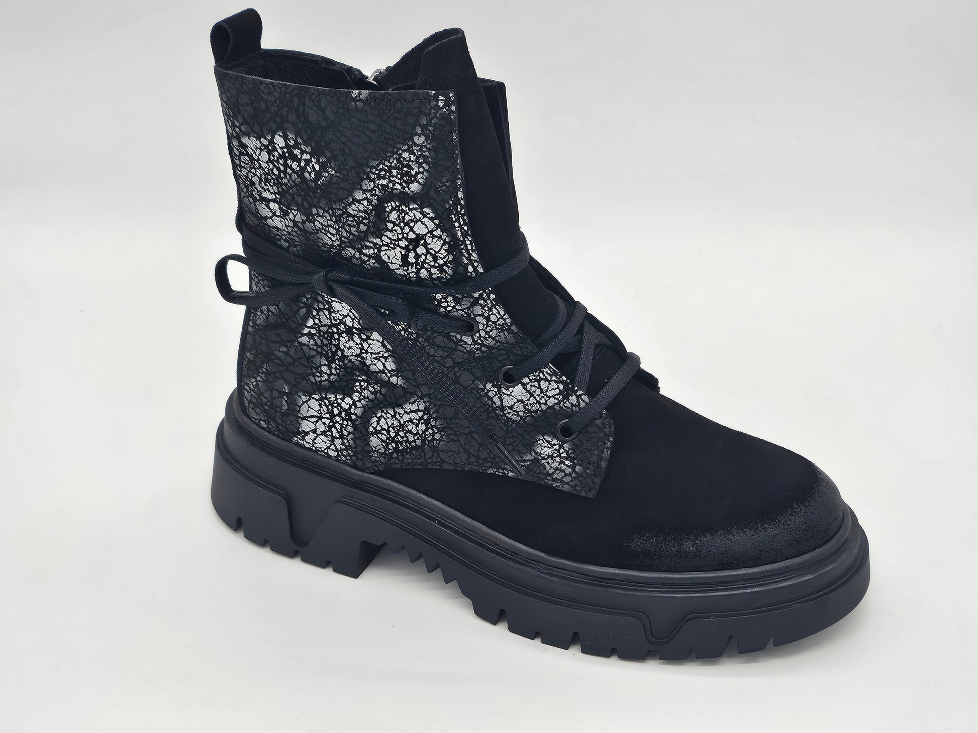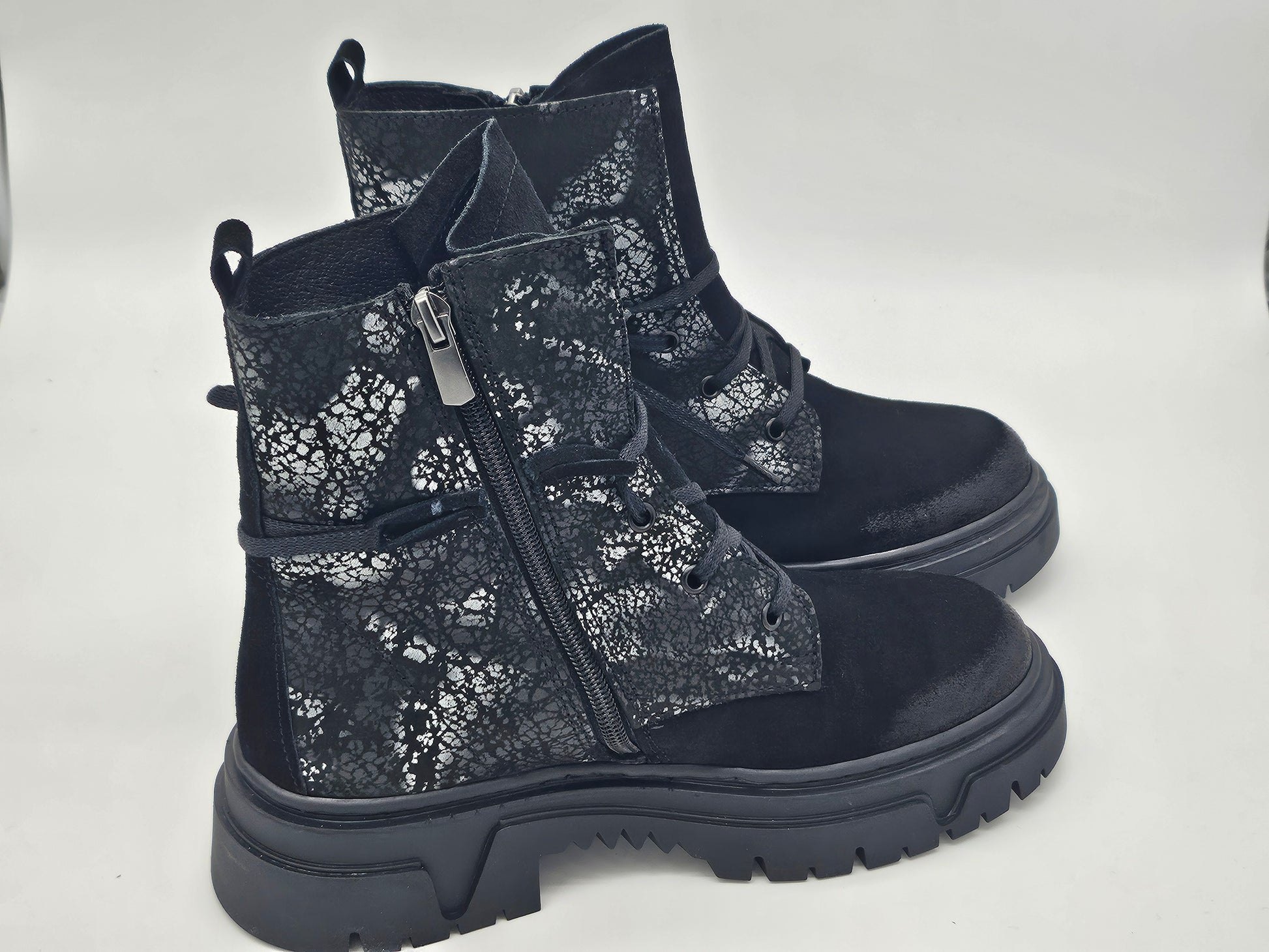 Представяме Ви дамски боти, произведени в България, изработени от ефектна естествена кожа в наситен черен цвят и змийски принт.Този модел е създаден за жената, която обича да експериментира със стила, без да прави компромис с качеството и комфорта.